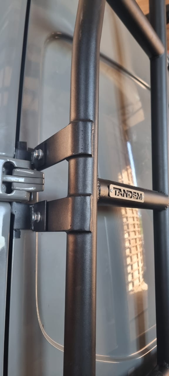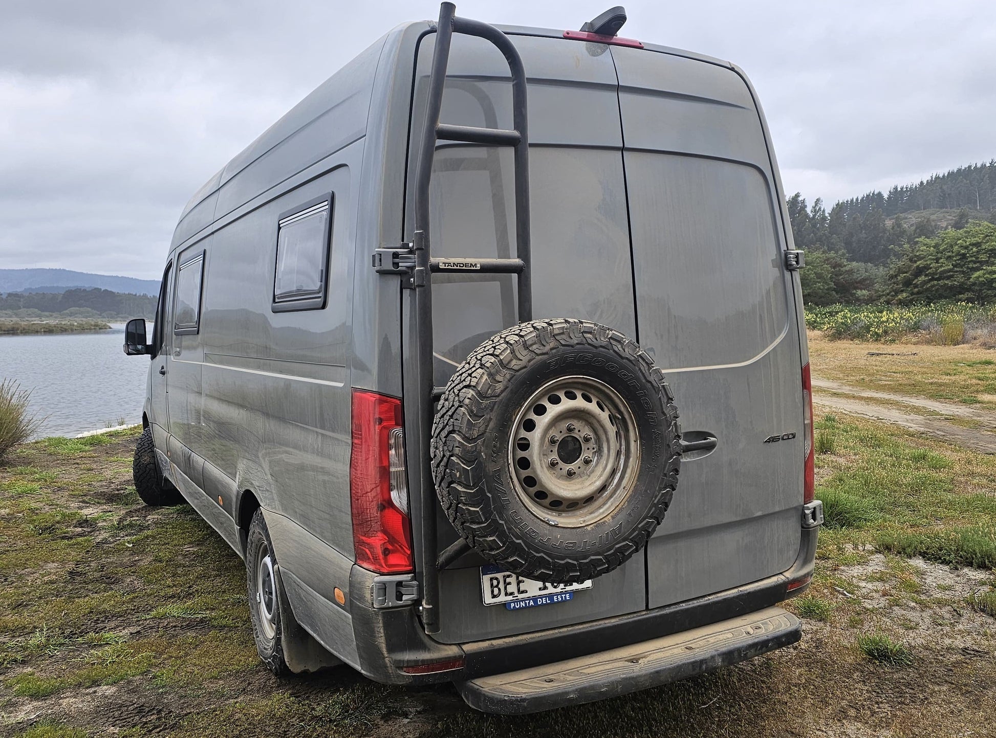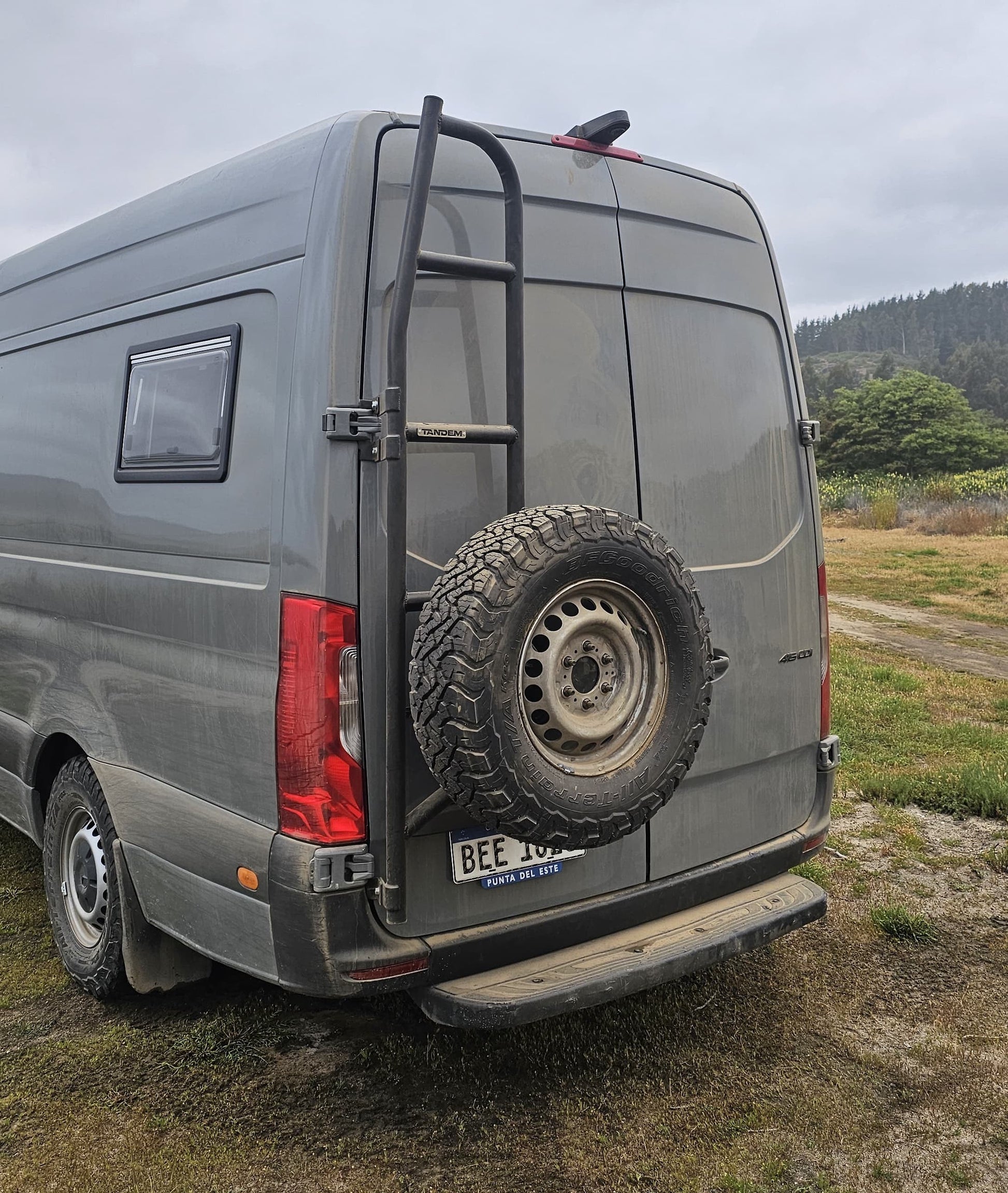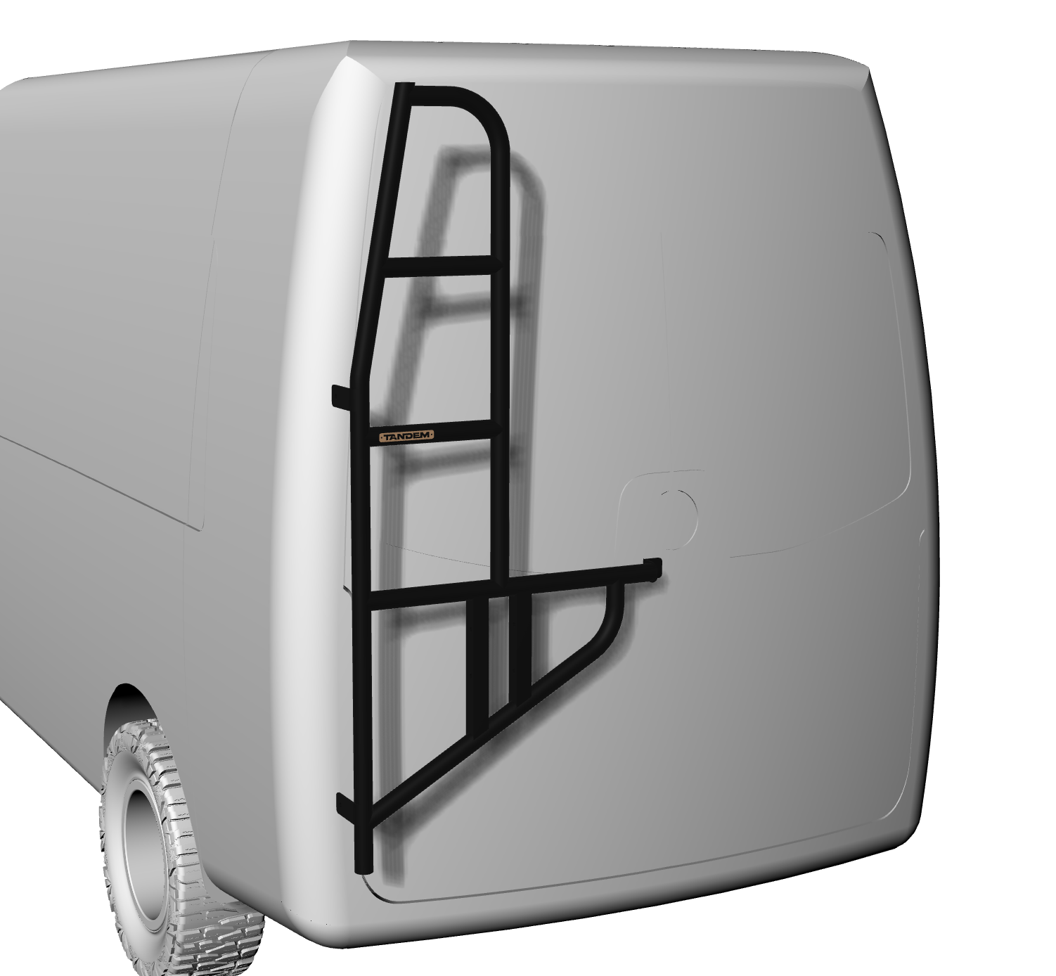 Diseñamos una Escalera para instalar en la puerta trasera izquierda de tu mercedes Sprinter , compatible con todos los años y sin necesidad de instalar bisagras 180º .